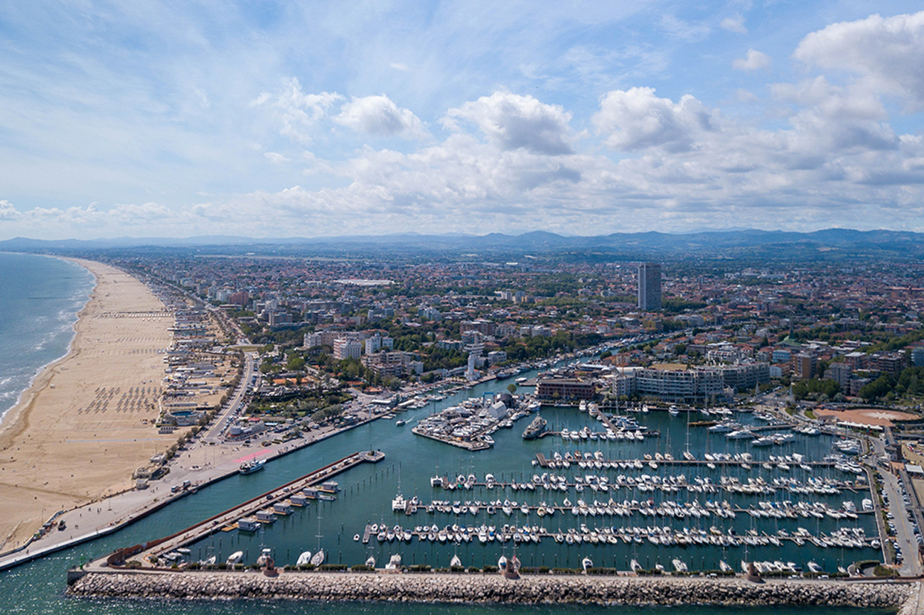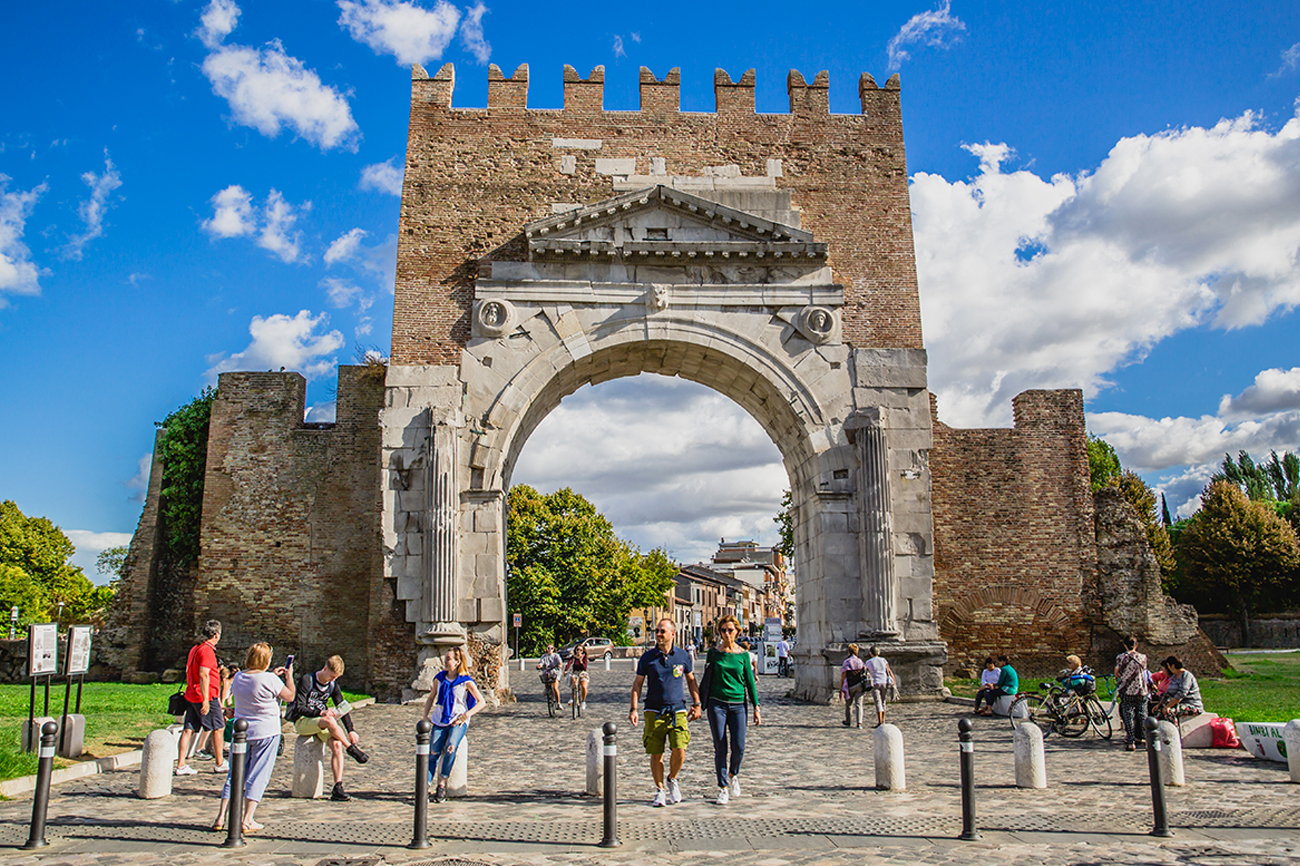 Rimini is a city on the Adriatic coast, located in the Emilia-Romagna region, famous for its sandy beaches and nightlife. The city is also rich in history and culture, with ancient Roman ruins, museums and medieval churches. The historic centre is characterised by cobbled streets, arcades and squares bustling with shops, restaurants and bars. Rimini is also known for its cuisine, which includes traditional dishes such as piadina, passatella and squaquerone. With its mild climate, outdoor activities such as cycling and hiking are very popular.